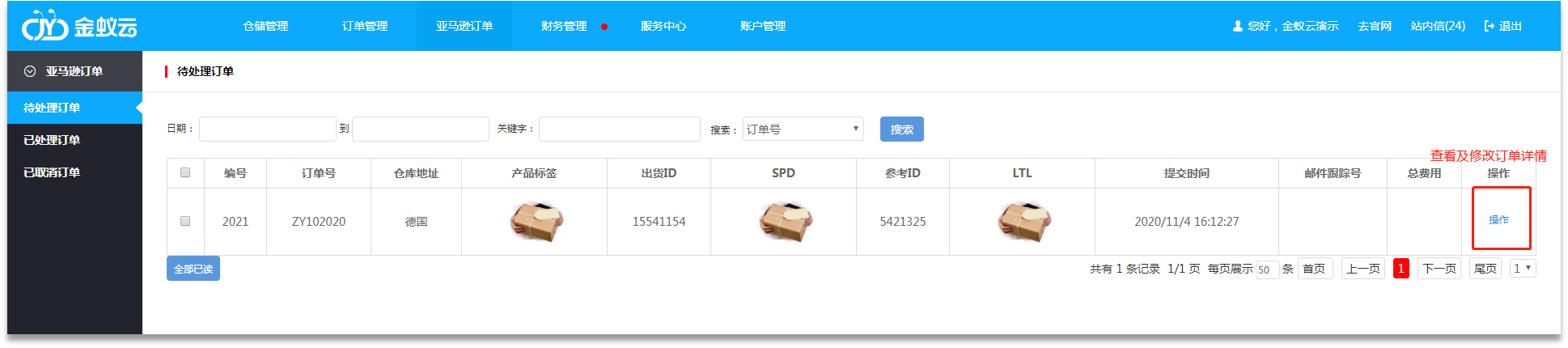 ·亞馬遜訂單提交后,將轉(zhuǎn)入【亞馬遜訂單】-【待處理訂單】,在該狀態(tài)下用戶可以對(duì)訂單進(jìn)行修改。