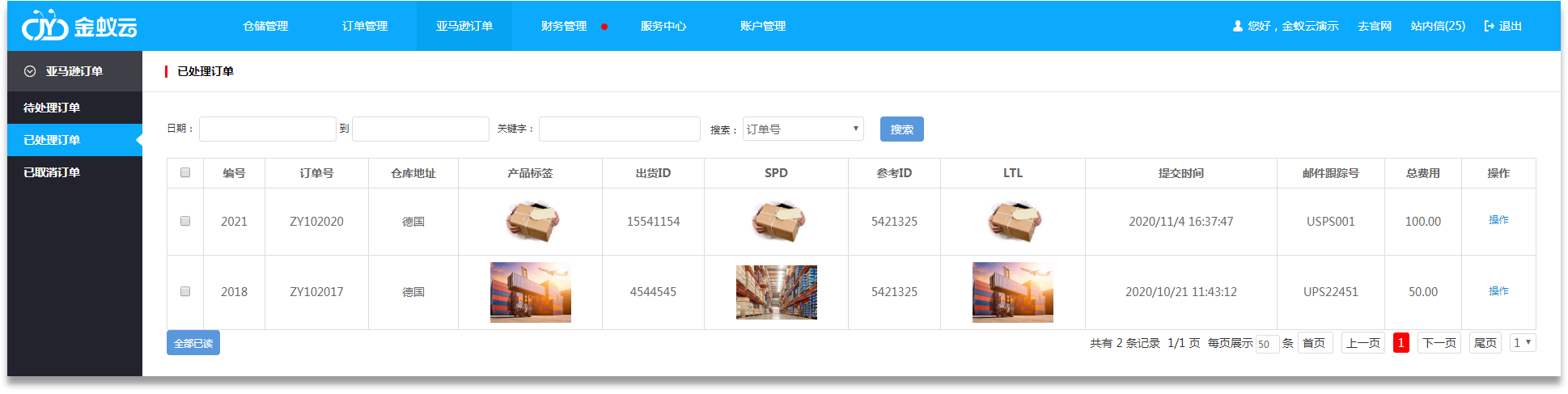 ·管理員審核通過后,訂單將轉(zhuǎn)入【亞馬遜訂單】-【已處理訂單】,用戶可以在此查看訂單詳情。