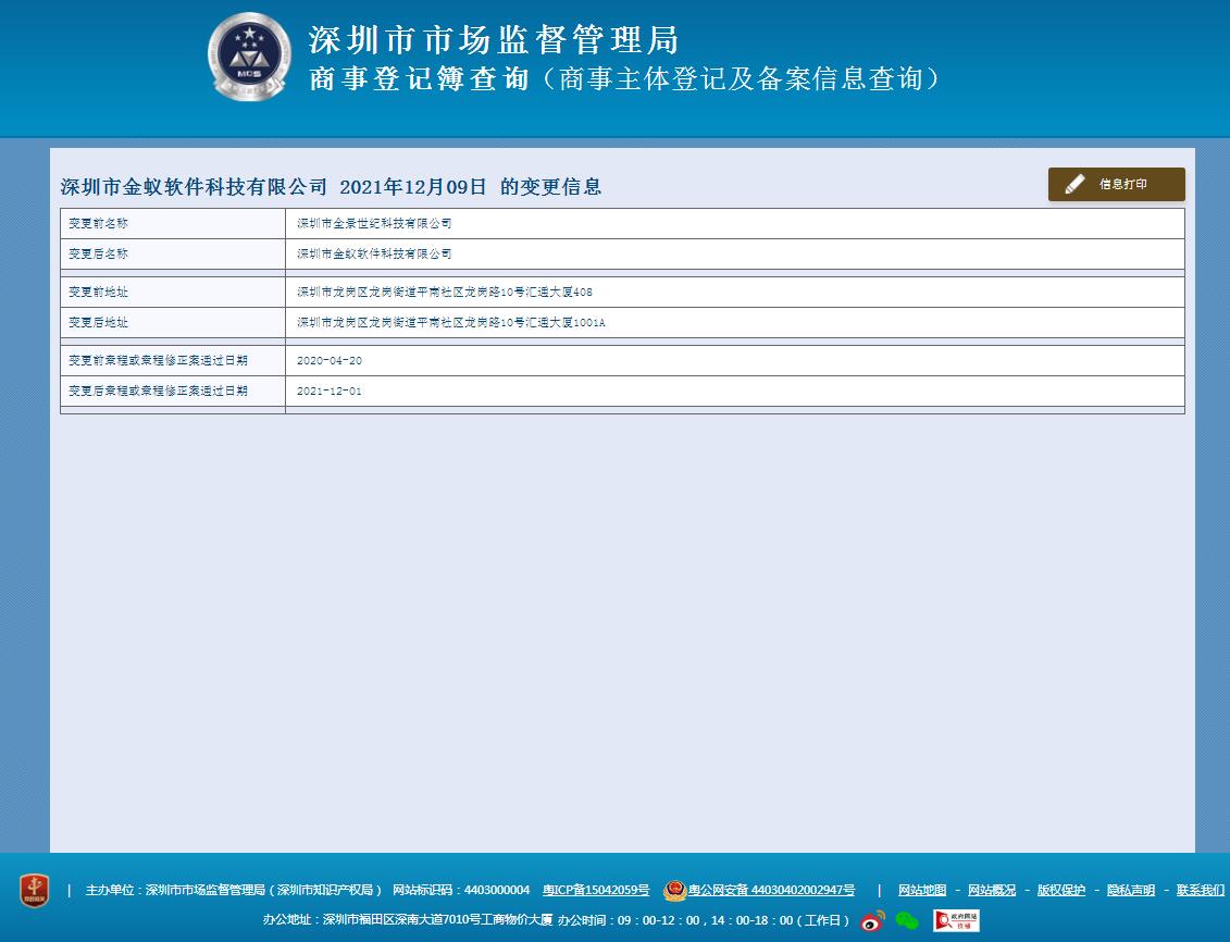 我司深圳市全景世紀(jì)科技有限公司因長(zhǎng)遠(yuǎn)發(fā)展需要,在2021年12月9日通過(guò)工商變更,現(xiàn)公司名稱正式變更為深圳市金蟻軟件科技有限公司。以后各位與我司間的業(yè)務(wù)往來(lái),涉及相關(guān)名稱變更事項(xiàng),煩請(qǐng)協(xié)助辦理相關(guān)變更: