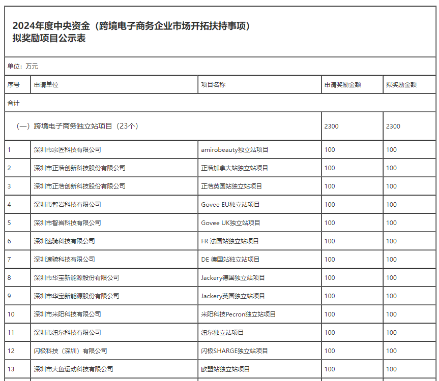 對符合申請條件的獨立站項目,每個項目最高給予100萬元獎勵。已獲得過中央資金資助的獨立站項目不再重復(fù)獎勵。