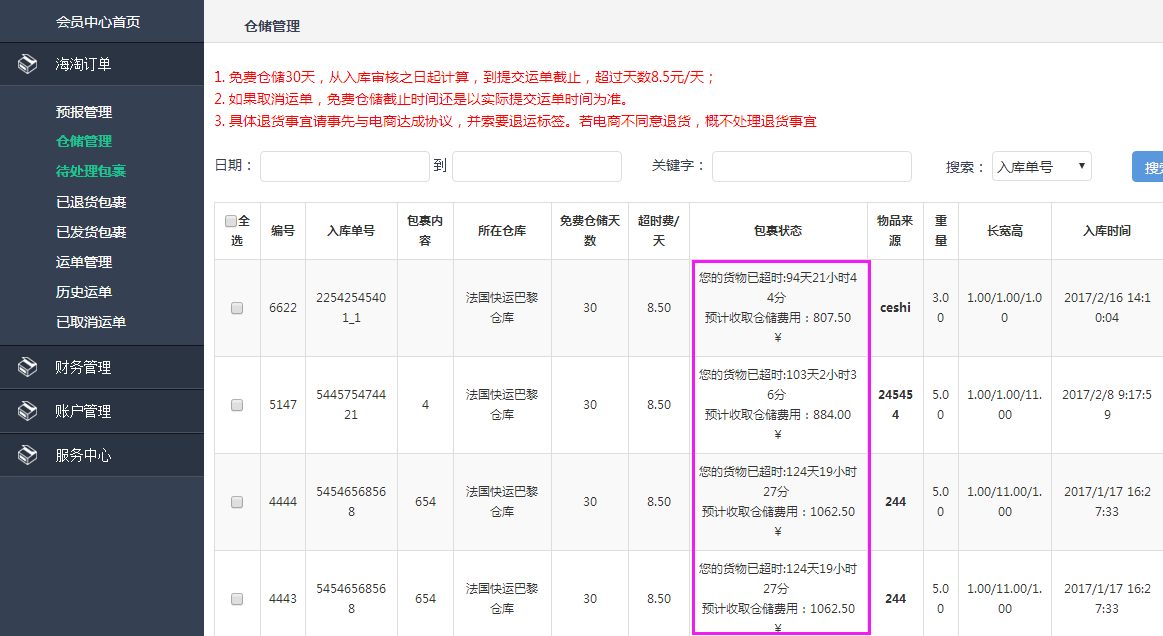 針對帶有簡易倉儲功能的海淘,一般有倉儲天數(shù)限制,可針對每個倉庫設(shè)置多少天免費,超出多少元/天,按超出的天數(shù)設(shè)置費用;