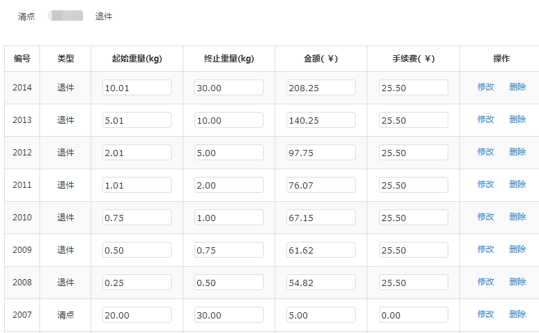 退貨、清點:對不同重量的貨物設(shè)置不同價格