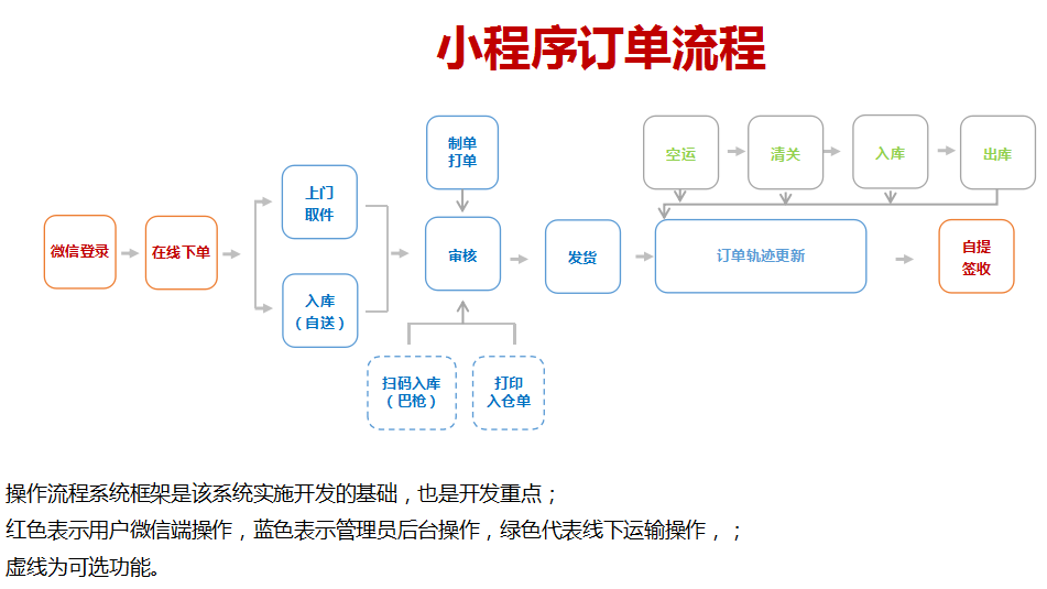 主要功能:A.客戶端:客戶通過(guò)微信小程序快速下單、查單和追蹤訂單。
